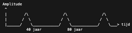De sinuscomponent bereikt nul-amplitude (neutrale fase) elke 40 jaar.
